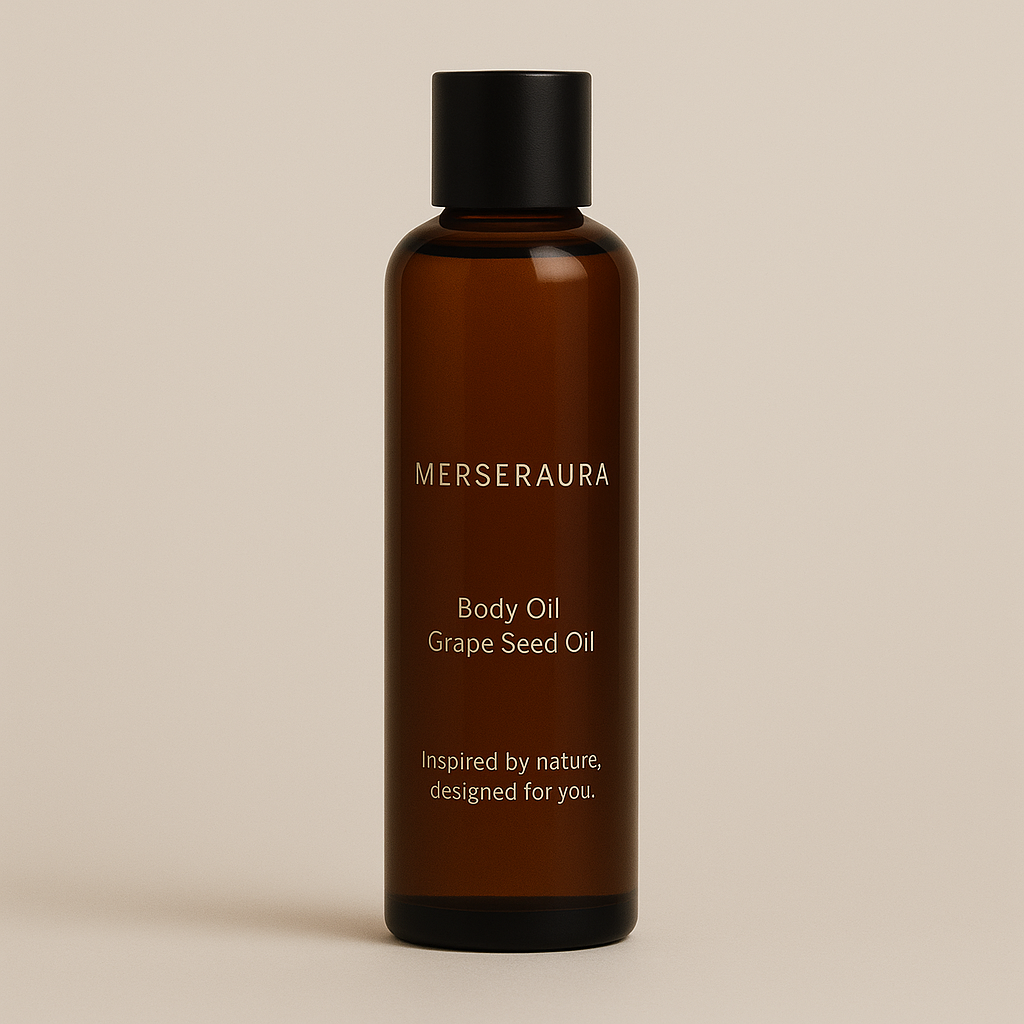 MERSERAURA Body Oil – Grape Seed je lahkotno, hitro vpojno olje, ustvarjeno za vsakodnevni ritual nege. Bogato z linolno kislino (omega-6), vitaminom E in antioksidanti obnavlja kožno bariero, ščiti pred izgubo vlage in pomaga preprečevati prezgodnje staranje kože. Njegova svilnata tekstura se vpije brez mastnega občutka, kožo pa naredi mehko, gladko in sijočo. Primerno je za vse tipe kože – tudi suho, občutljivo ali k aknam nagnjeno – saj pomirja razdraženost, vrača elastičnost in podpira naravno ravnovesje kože.